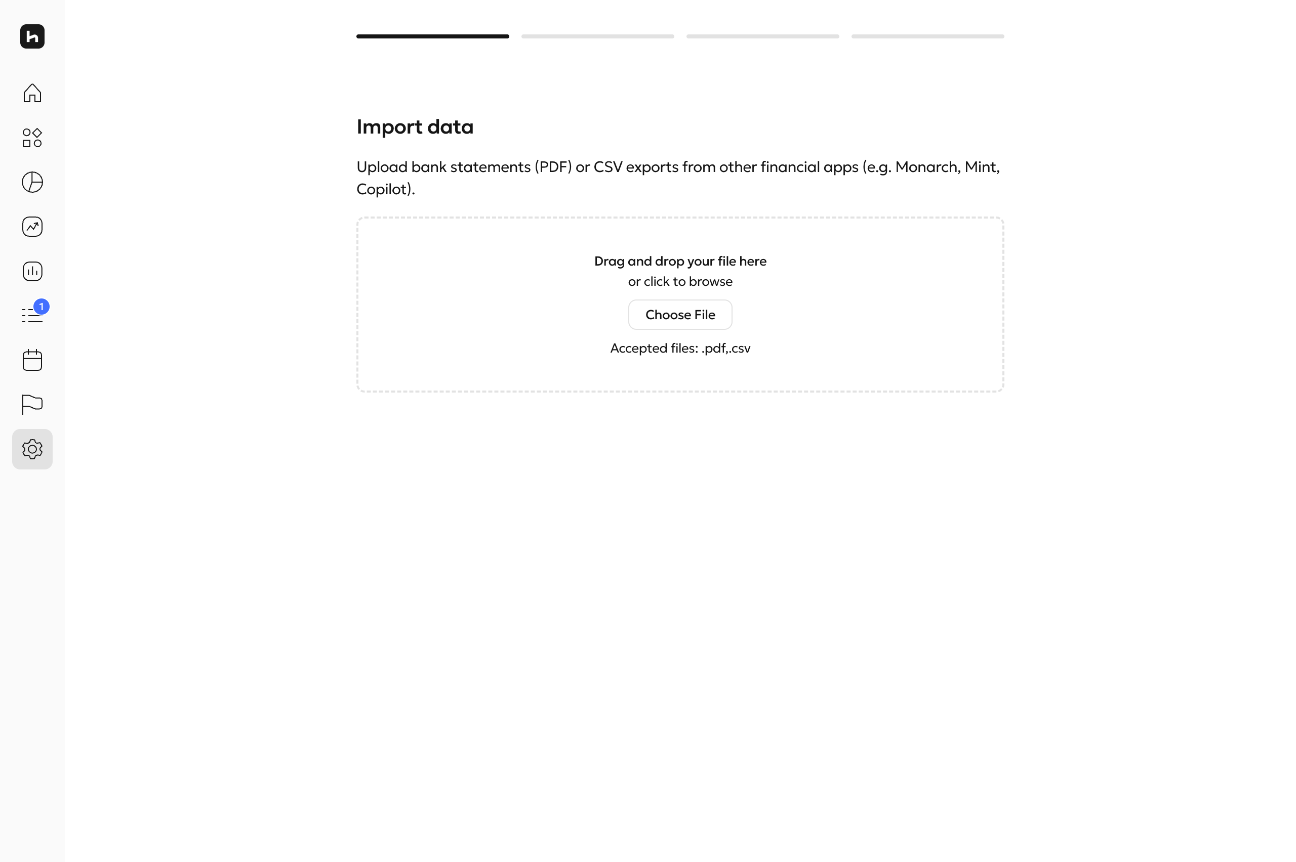 To solve this problem, we built an import flow that supported arbitrary PDFs, and imports from Monarch and Mint. It was good, but not great. We were doing a bunch of client side processing and the flow was fragile. If you ended up in a bad state, your account was toast. There was no undo.